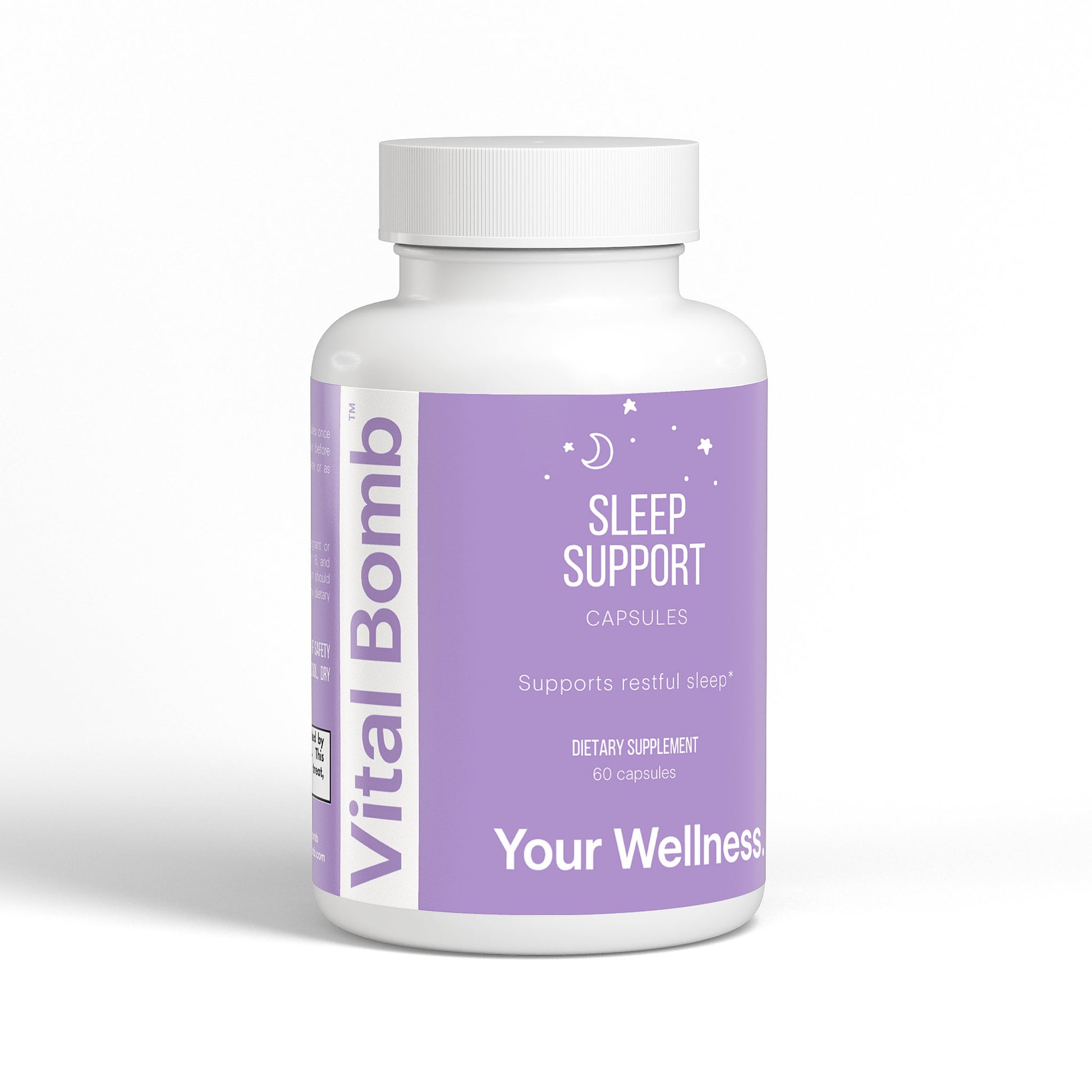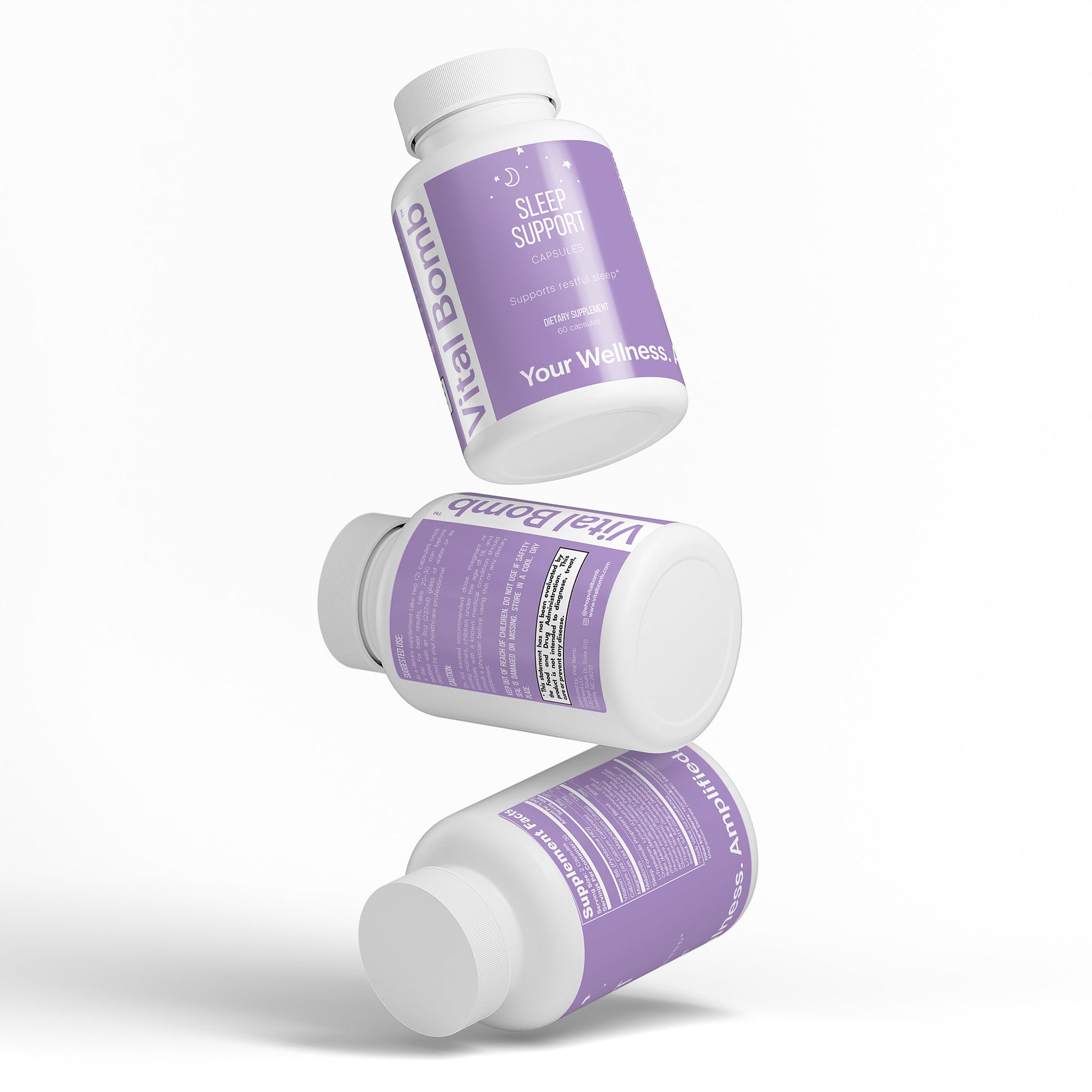 Rest easy. Wake ready. Vital Bomb Sleep Support blends gentle natural ingredients to help you fall asleep faster and wake up refreshed. No grogginess, just quality rest.